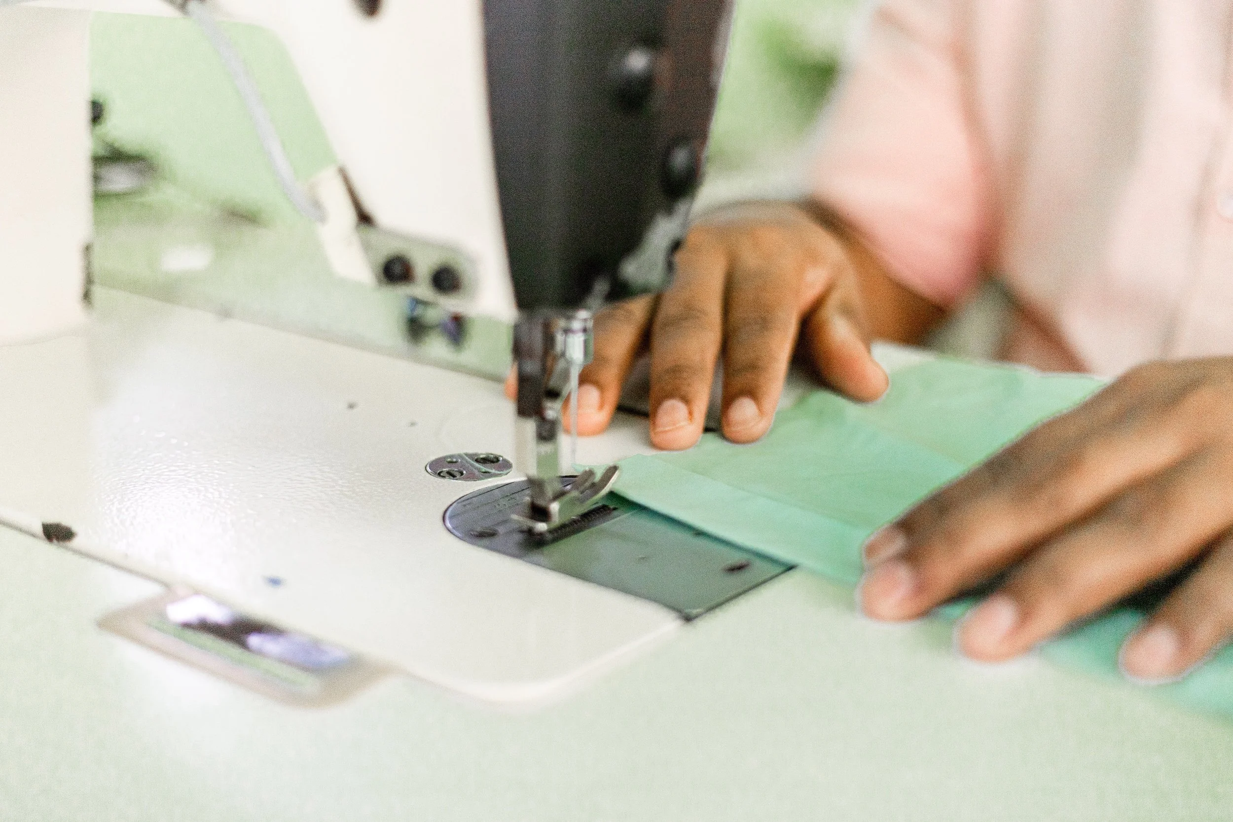 Hands at work. Fabric measured correctly. Stitching done with patience.